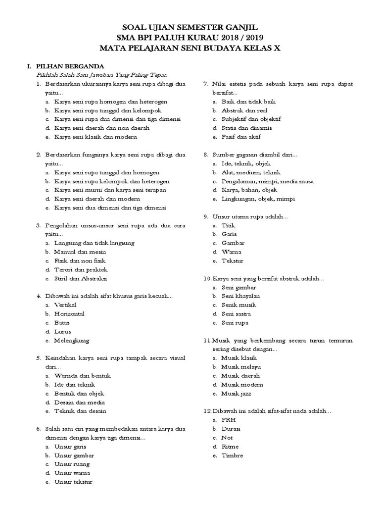 Lengkap 45 contoh soal uas seni budaya kelas 7 smpmts.